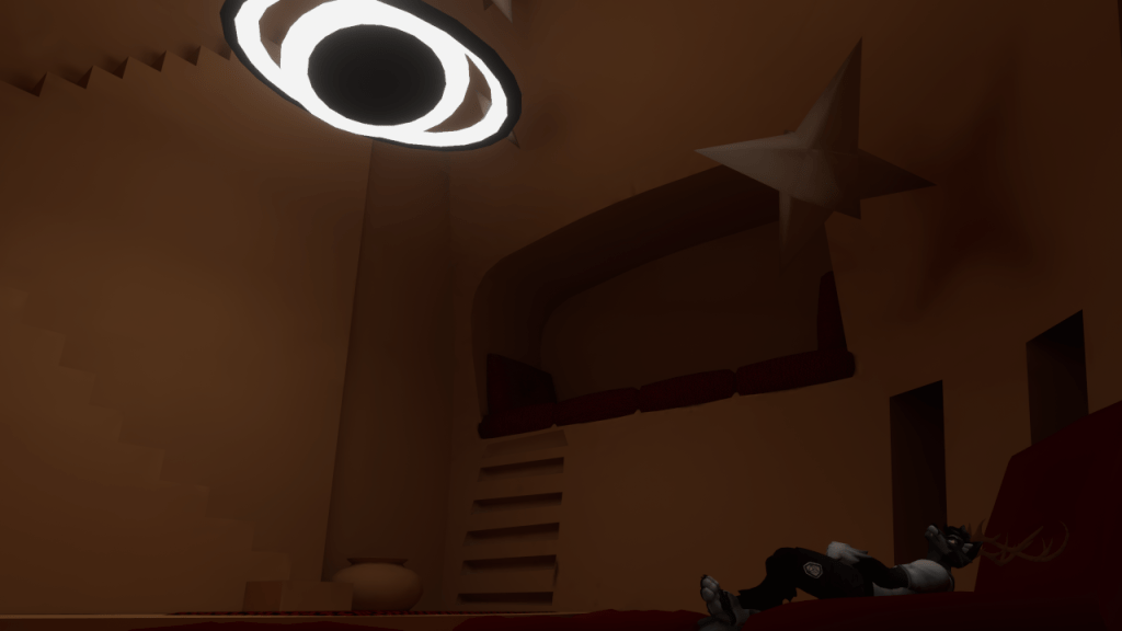 Description : Long time ago‚ there was a fantastical kingdom that flourished under the guidance of the warrior priestess Asthoria‚ a legendary figure who embodied the balance of power and wisdom․ But a terrible cataclysm struck the realm‚ reducing it to ruin and causing the petrification of its valiant giant warriors․ Now‚ the kingdom lies in ruins‚ dominated by the enormous flying whales that soar around the ruins of ancient palaces․ But not all is lost˸ it is said that the last surviving faithful to Asthoria have hidden her avatar in a secret temple‚ inside a crypt To reach this place and free the warrior priestess’s avatar‚ you must explore the ruins of the kingdom‚ searching for clues and solving puzzles․ Only the bravest and most skilled adventurers will be able to overcome all the challenges and reach the secret temple․ It is suggested to use the headset in VR mode․ A world by @metamorphosiVR || Concept & level design @Hellghorn‚ Nicola Buttari ||Concept & original music by @_metaveo‚ Andrea Serrapiglio