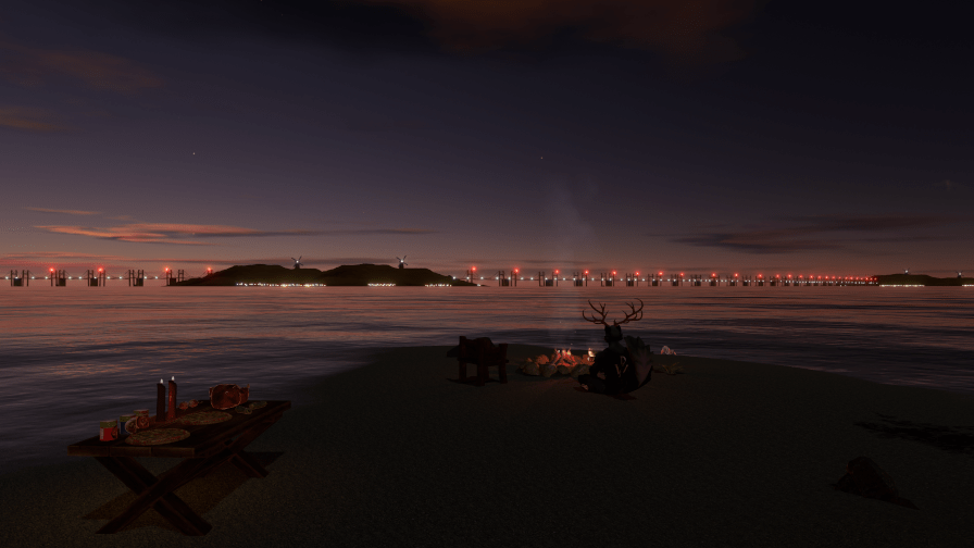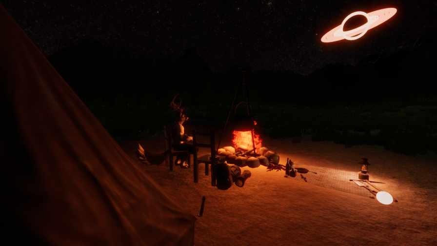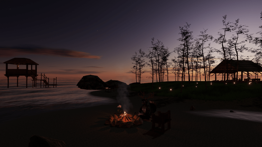Tags : VRChat, PC Only, C32, chill, night, campfire, island