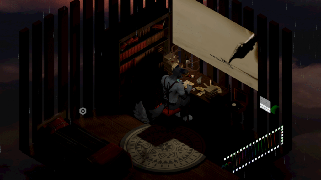 Nocturnal world where you can hear the rain, sheltered in front of a screen.